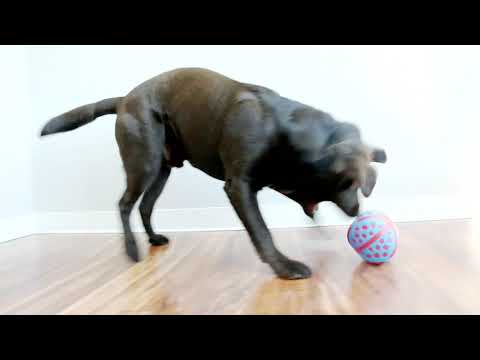 It produces a slow and steady roll when nudged, gradually dispensing kibble or treats. The unique exterior creates an unpredictable motion, rewarding natural foraging instincts. The outer grippy material mutes noise for quieter play. Use this 1-cup slow feeder as a food bowl to help manage weight by extending mealtime. Unscrews easily for filling and hand washing.