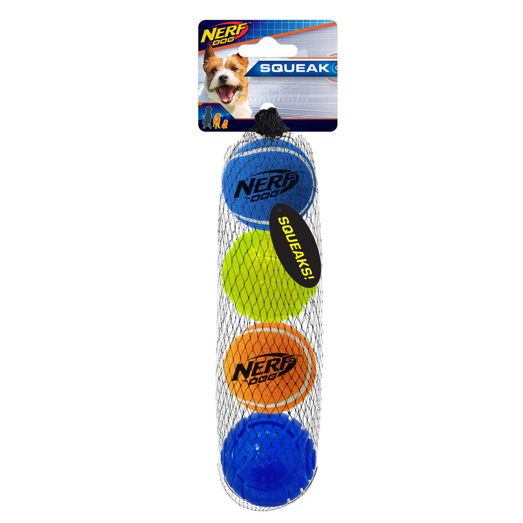 The NERF DOG Squeak Tennis Balls will entertain your dog for hours on end! The durable felt body stands up to extended chewing and makes an interactive squeaking sound that dogs love. Great for toss and fetch, or solo play sessions.
