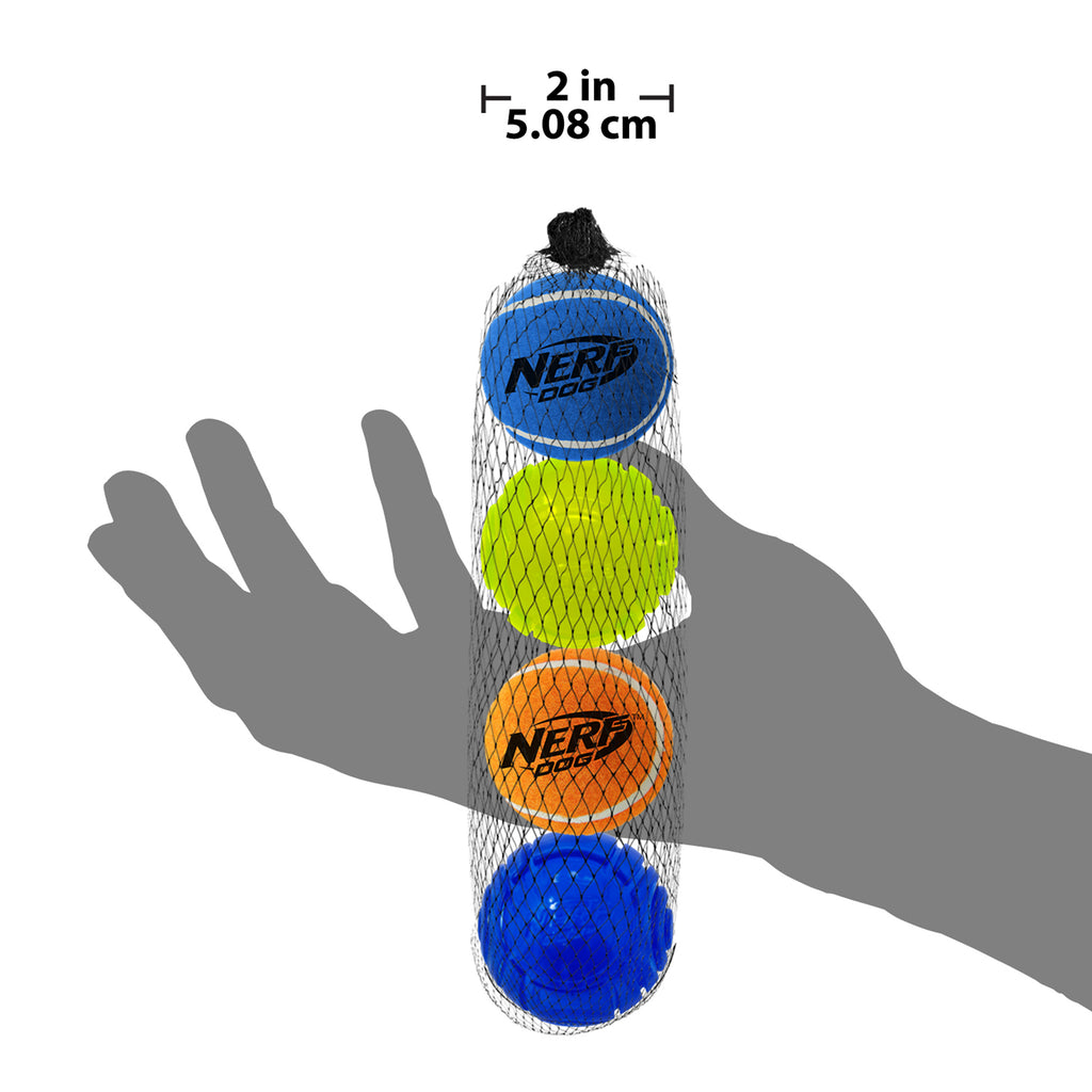 Nerf Dog Toy - 4 Ball Pack - 2 x Squeak Tennis Balls / 2 x TPR Lightning LED Balls 5cm