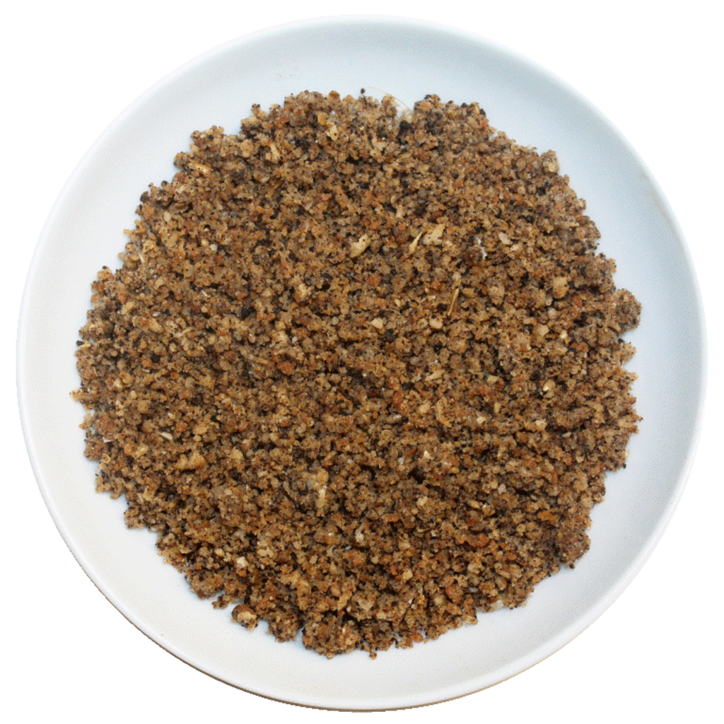 Slowly add the water, while mixing to form a moist crumbly food. Do not make into a paste. Store prepared food refrigerated for 1 day or frozen for 1 week.